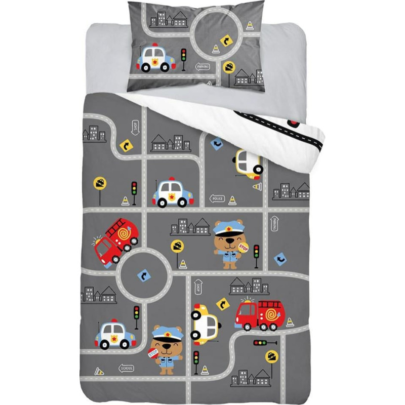Jūsu iepirkumu grozs ir tukšs! Kokvilnas gultas veļa 100x135 3673 B Policijas ugunsdzēsības nodaļa pelēkas ceļa zīmes 3013 spilvendrāna 40x60 bērniem