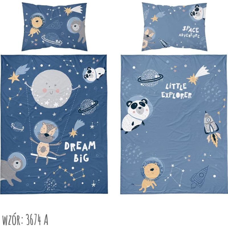 Jūsu iepirkumu grozs ir tukšs! Kokvilnas gultas veļa 100x135 3674 A Cosmos Rocket zilās planētas dzīvnieki 3037 spilvendrāna 40x60 bērniem