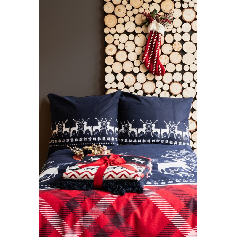 Jūsu iepirkumu grozs ir tukšs! Flaneļa gultas veļa 220x200 3642 Ziemassvētku ziemeļbriežu pleds tumši zils sarkans Flaneļa sākums 1