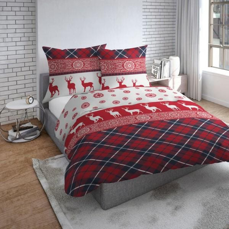 Jūsu iepirkumu grozs ir tukšs! Flaneļa gultas veļa 220x200 3648 Ziemassvētku ziemeļbrieža sniegpārslas sarkanas tumši zilas pleds Flaneļa mājas lapa 1