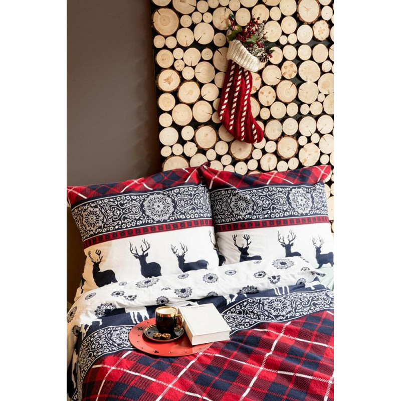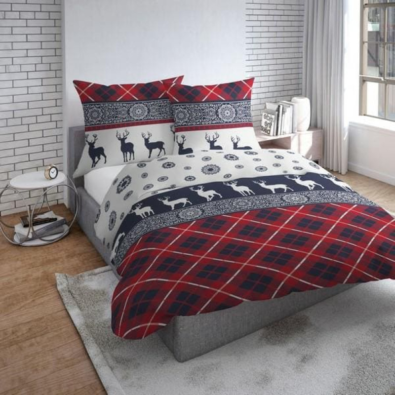 Jūsu iepirkumu grozs ir tukšs! Flaneļa gultas veļa 220x200 3648 B Ziemassvētku ziemeļbrieža sniegpārslas tumši zils sarkans pleds Flaneļa Sākums 1