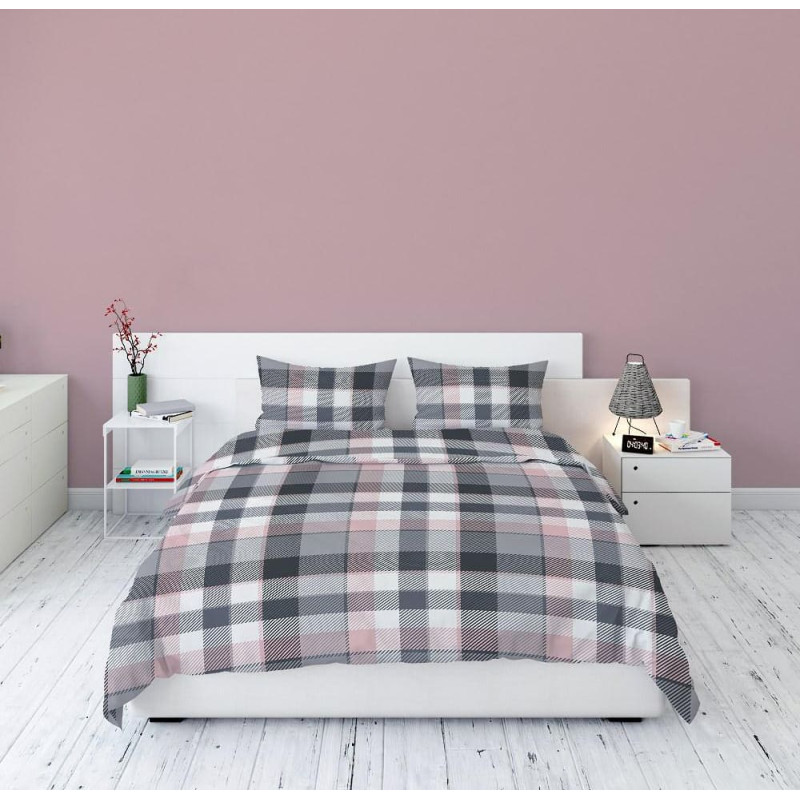 Jūsu iepirkumu grozs ir tukšs! Flaneļa gultas veļa 220x200 3666 Plaids pelēks rozā pūderis Flanels Home 1