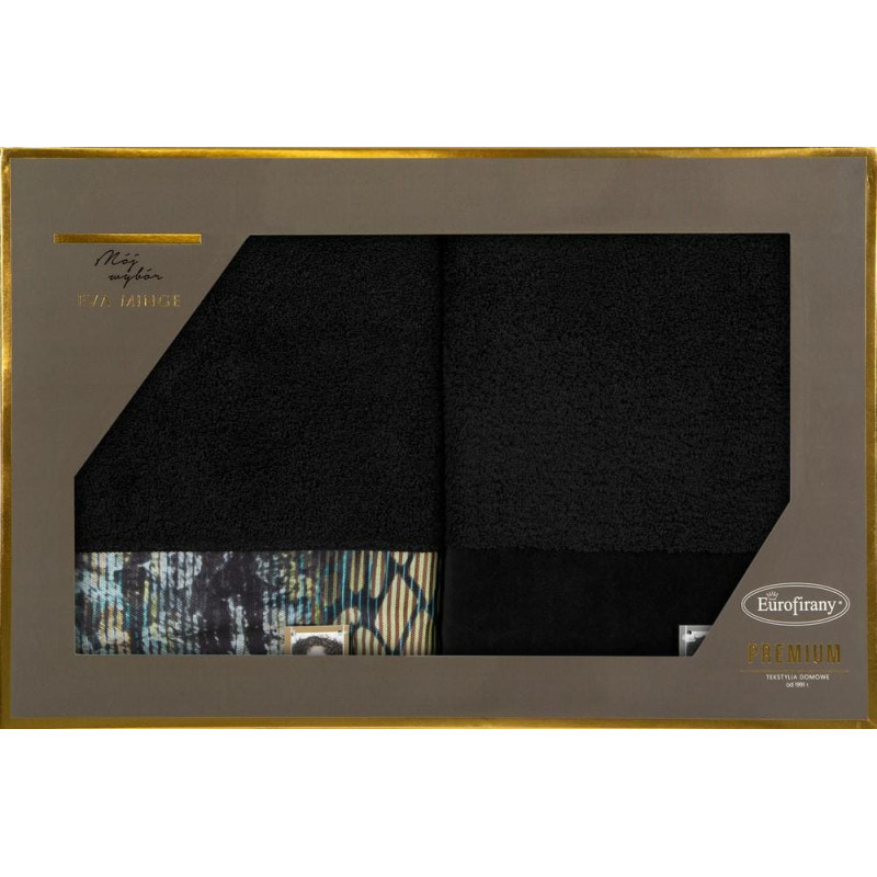 Jūsu iepirkumu grozs ir tukšs! Dvieļu komplekts kastītē Carla 2gb 70x140 melns 500g/m2 frotē Eva Minge