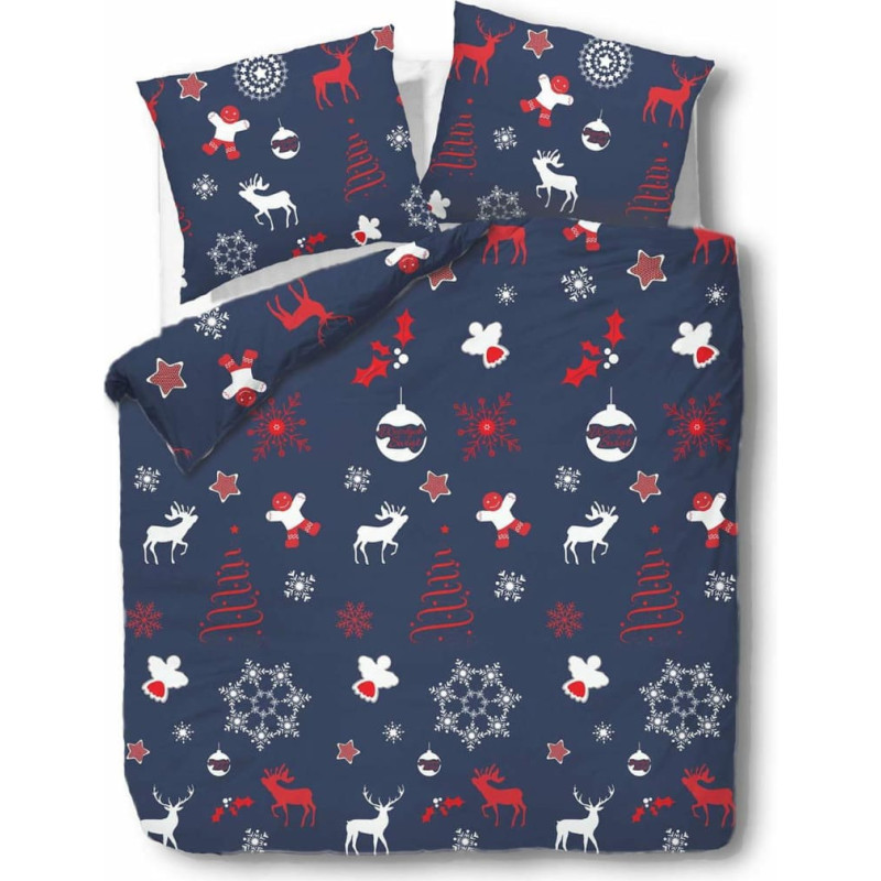 Jūsu iepirkumu grozs ir tukšs! Flaneļa gultas veļa 180x200 Ziemassvētki 31481/2 tumši zili sarkani balti nieciņi ziemeļbriežu sniegpārslas
