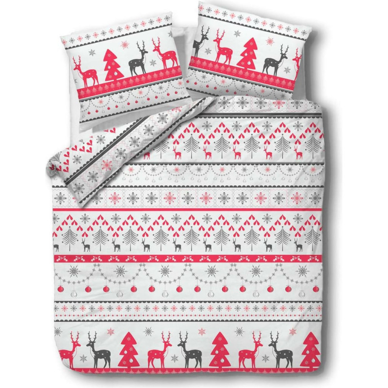 Jūsu iepirkumu grozs ir tukšs! Flaneļa gultasveļa 220x200 Ziemassvētki 31480/1 balti pelēki rozā ziemeļbriežu zvaigznes Ziemassvētku eglītes sniegpārslas