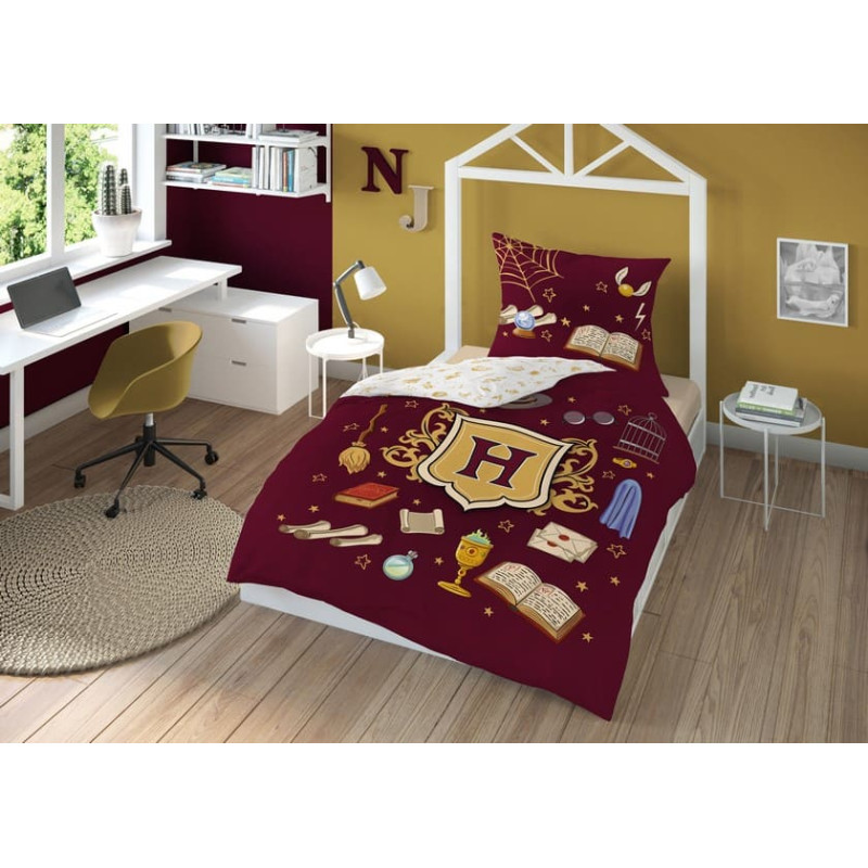 Jūsu iepirkumu grozs ir tukšs! Kokvilnas gultas veļa 160x200 Harijs Poters 3625 A ģerbonis bordo sinepes 0098 jauniešu Holandes kolekcija