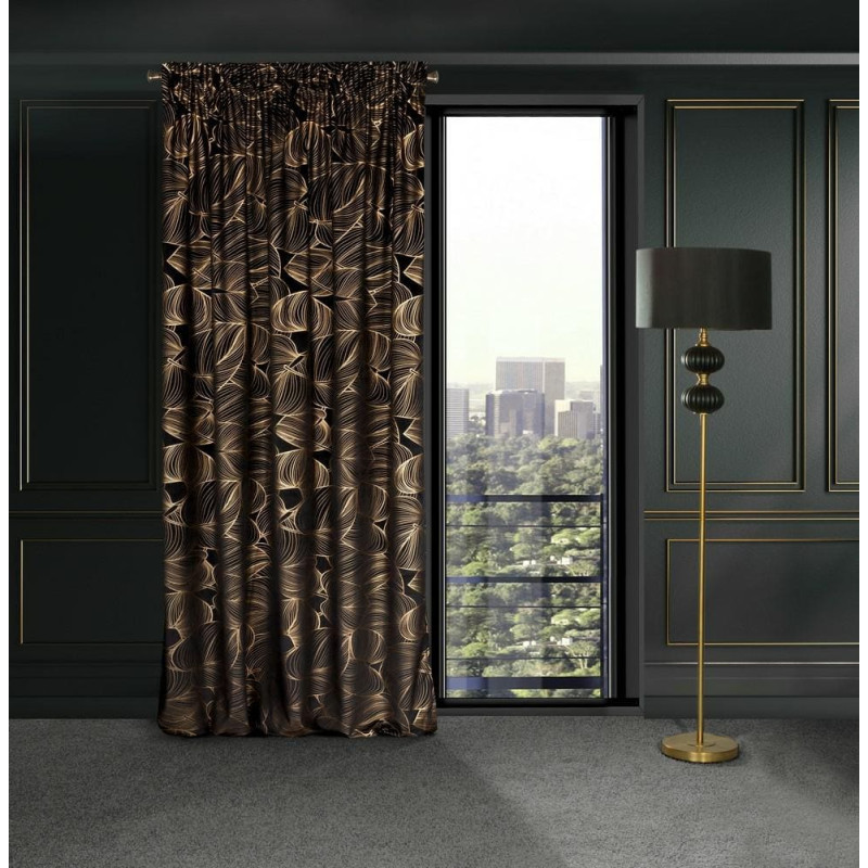 Jūsu iepirkumu grozs ir tukšs! Aizkars 140x270 Victoria 1 melnā zelta lapas, gatavas uz samta lentes Limited Collection