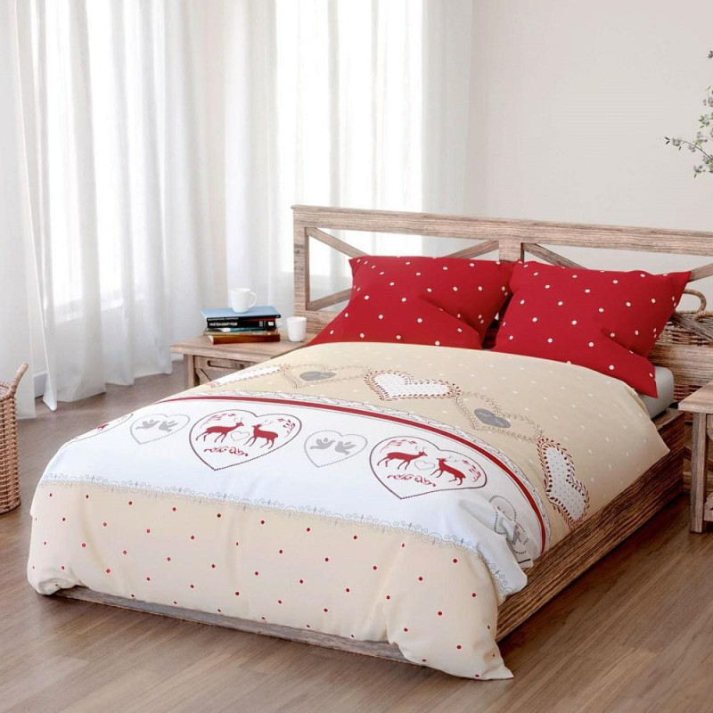 Jūsu iepirkumu grozs ir tukšs! Ziemassvētku gultasveļa 220x200 3A ziemeļbriežu sirsniņas bēša sarkana kokvilnas Ziemassvētki