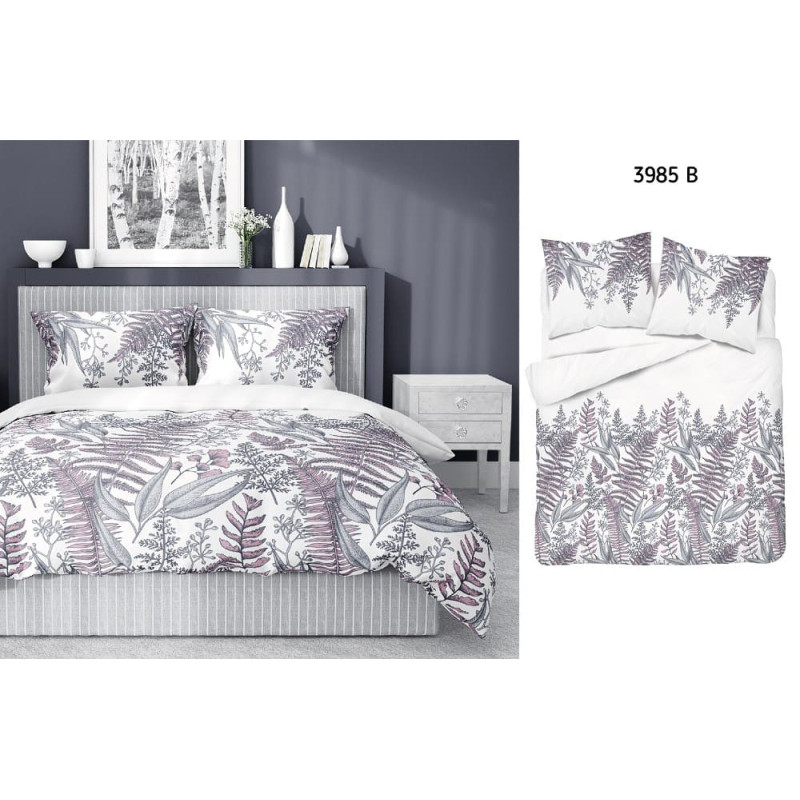 Jūsu iepirkumu grozs ir tukšs! Satīna gultasveļa 140x200 3985 B baltas viršu pelēkas lapas ar vienu spilvendrānu Home Satin 78