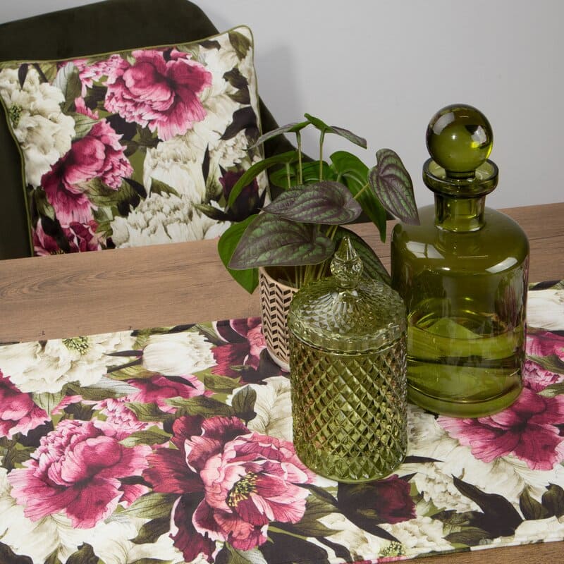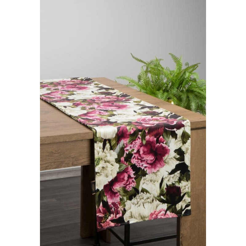 Jūsu iepirkumu grozs ir tukšs! Galdauta galda celiņš 35x180 Samta olīvu rozā samta ziedi