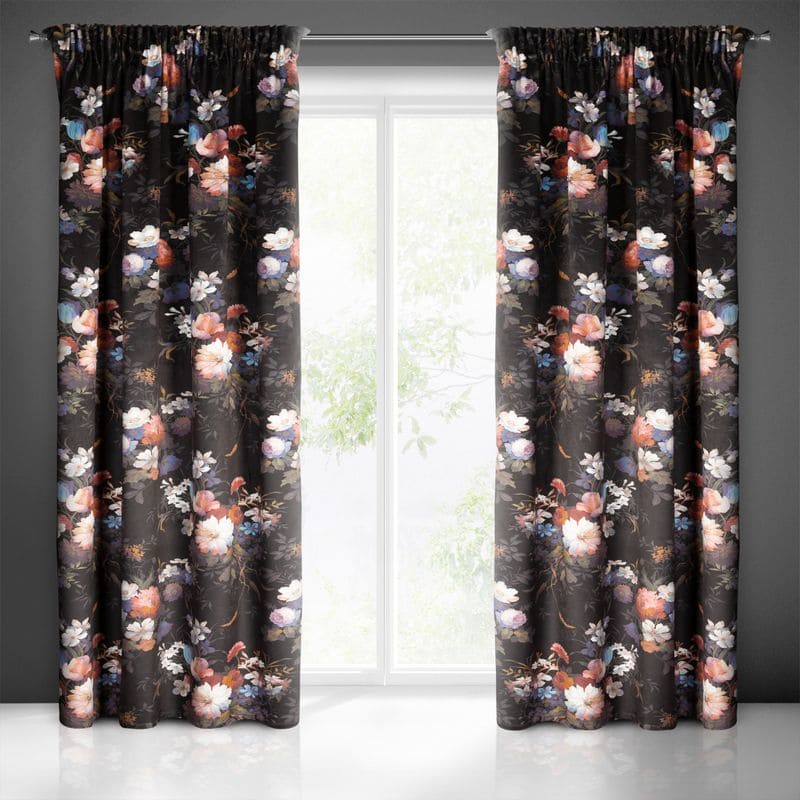 Jūsu iepirkumu grozs ir tukšs! Aizkars 140x270 Karen melni rozā ziedi gatavi uz E11 lentes