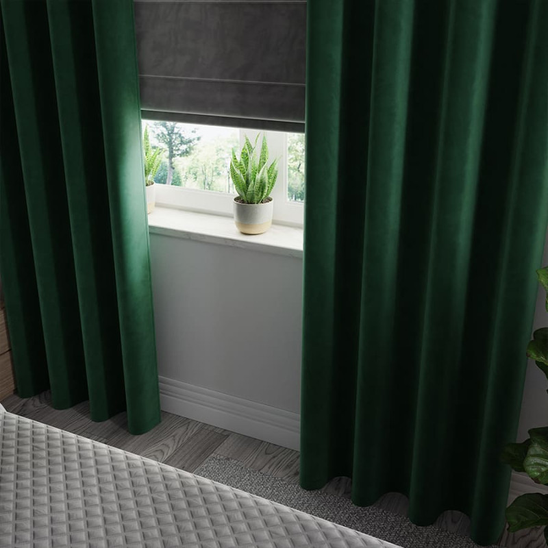 Jūsu iepirkumu grozs ir tukšs! VELVI Gatavs aizkars ar cilpām, platums 140 x augstums 250cm, krāsa 010 tumši zaļa; pudelēs VELVI0/ZGP/010/140250/1