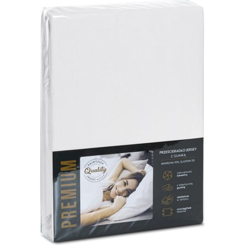 Jūsu iepirkumu grozs ir tukšs! Džersija palags 4 ar elastīgo joslu 90x200 balts augstajam matracim 25 cm 190 g/m2