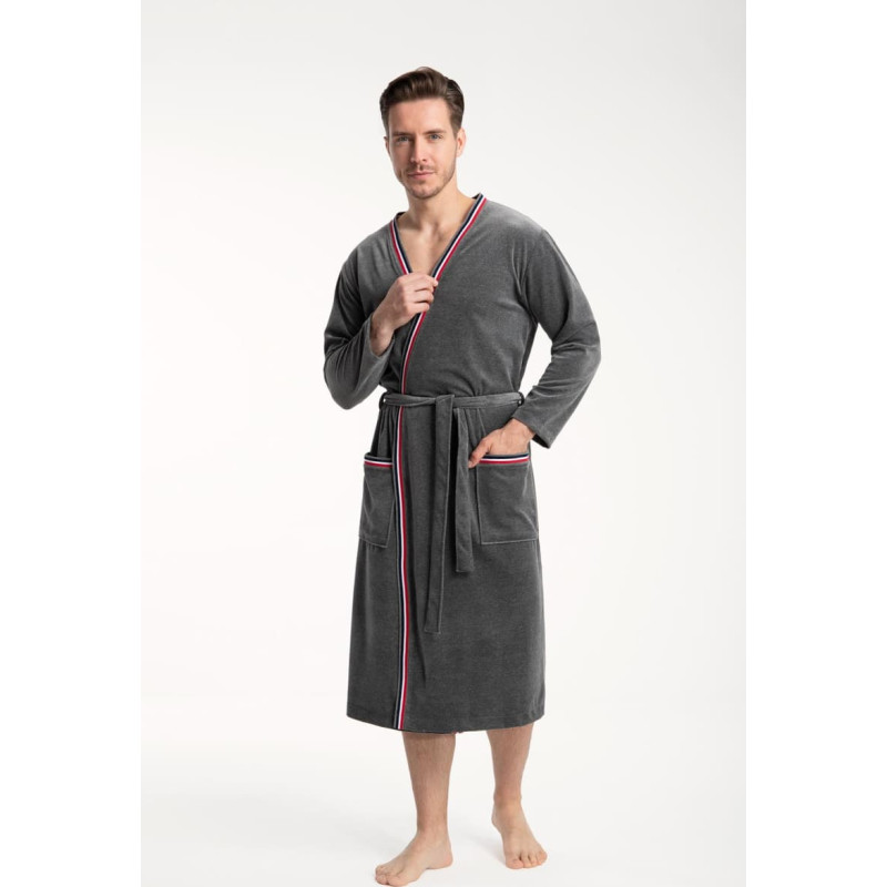 Jūsu iepirkumu grozs ir tukšs! Vīriešu peldmētelis 854 3XL, velūrs, grafīts, krāsains kroks