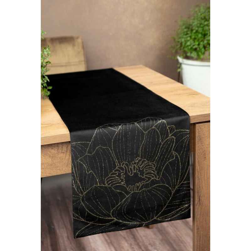 Jūsu iepirkumu grozs ir tukšs! Galdauta galda celiņš 35x220 Blink 13 melna zelta samta zieds