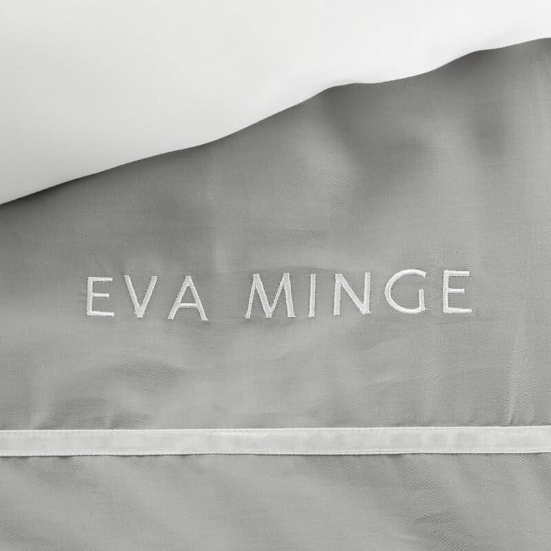 Jūsu iepirkumu grozs ir tukšs! Satīna gultas veļa 220x200 Eva pelēka balta samta lente 9C Eva Minge