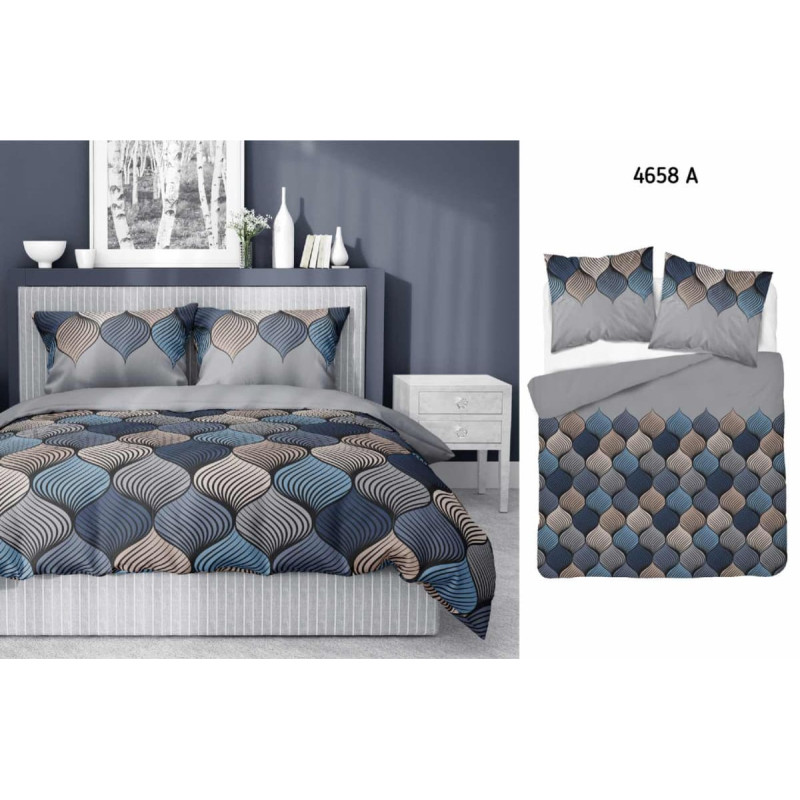 Jūsu iepirkumu grozs ir tukšs! Kokvilnas gultas veļa 160x200 Svari pelēks ģeometrisks raksts 4658 A Kokvilna 37