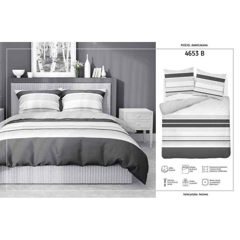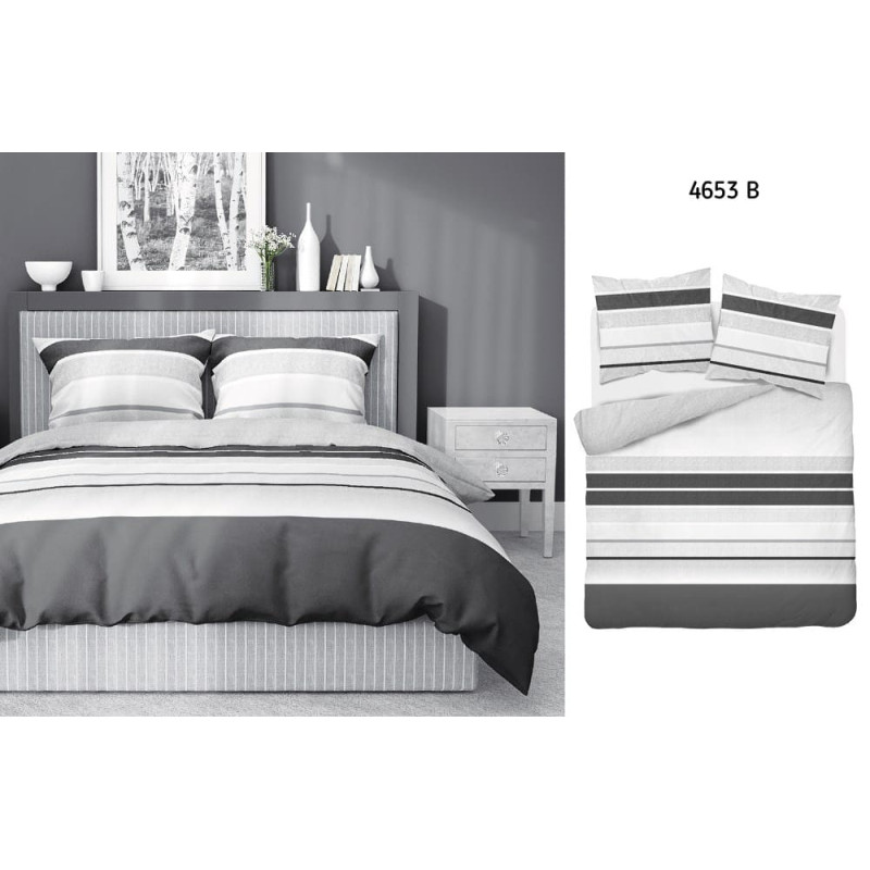 Jūsu iepirkumu grozs ir tukšs! Kokvilnas gultas veļa 160x200 Svītras grafīta pelēka balta 4653 B Kokvilna 37