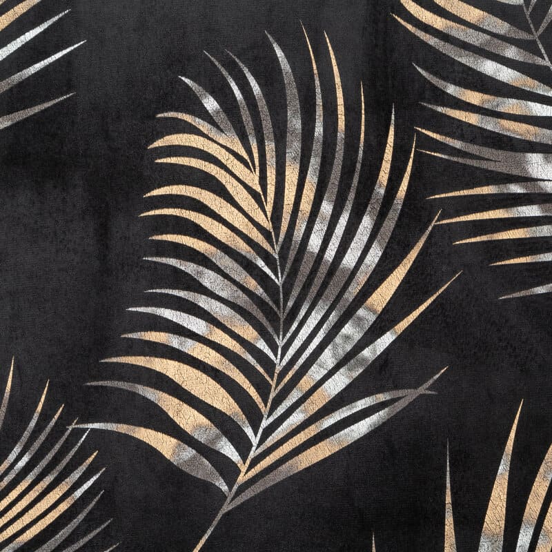 Jūsu iepirkumu grozs ir tukšs! Aizkars 140x250 Gloria melnā zelta lapas samta gatavs ar cilpām