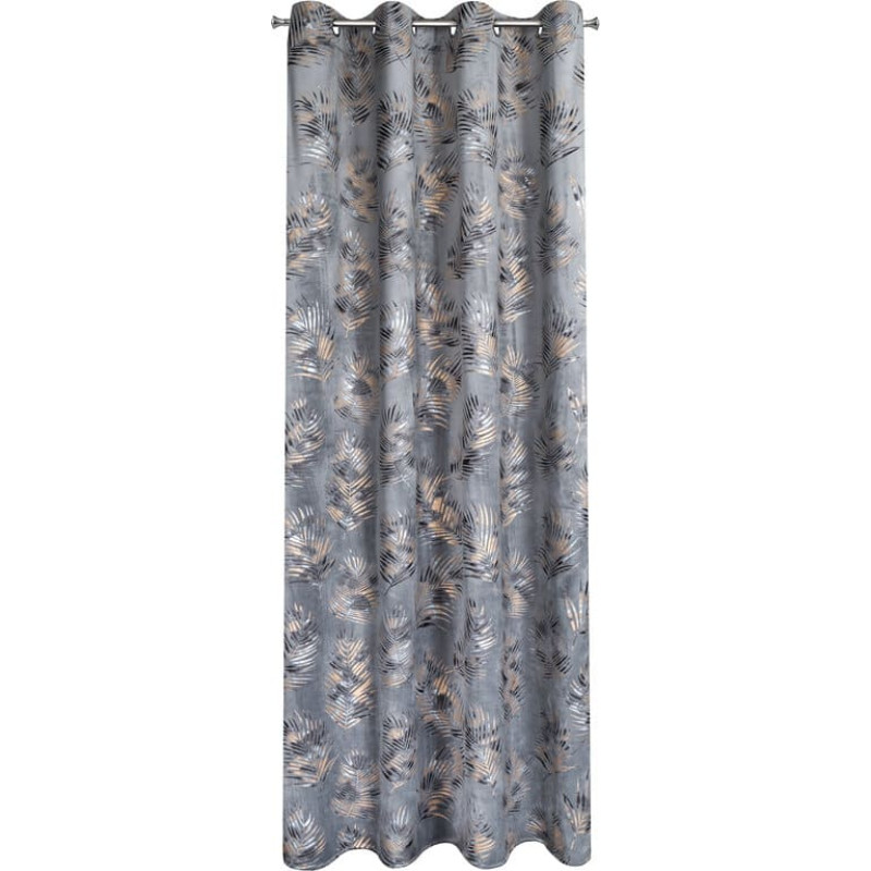 Jūsu iepirkumu grozs ir tukšs! Aizkars 140x250 Gloria tērauda zelta lapas samta gatavs ar cilpām