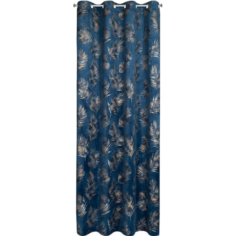 Jūsu iepirkumu grozs ir tukšs! Aizkars 140x250 Gloria tumši zils zelta lapas samta gatavs ar cilpām
