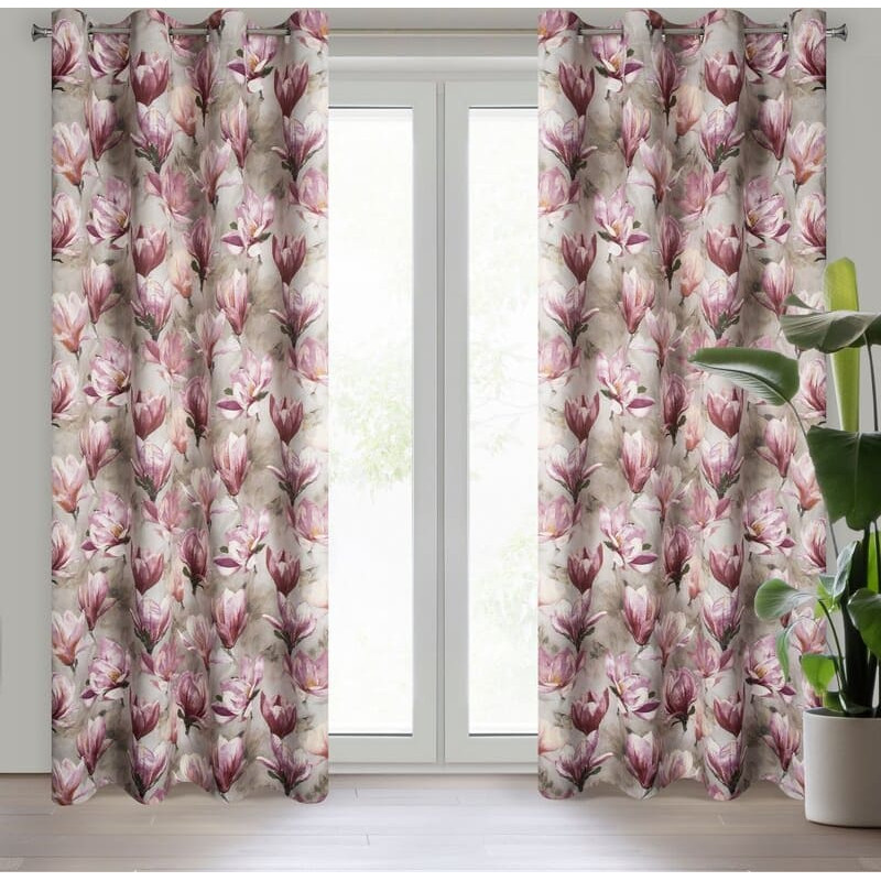 Jūsu iepirkumu grozs ir tukšs! Aizkars 140x250 Lari, bēšs, rozā, ziedi, gatavs, aptumšojošs ar cilpām