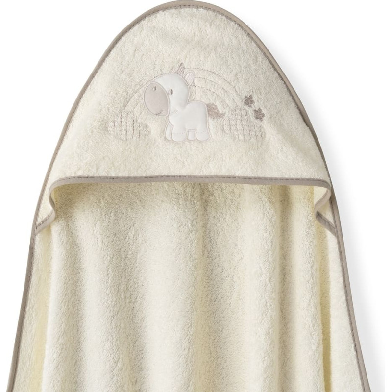 Jūsu iepirkumu grozs ir tukšs! Interbaby Vannas dvielis 100x100 Unicorn bēšs dvielis ar kapuci + frotē kokvilnas priekšauti