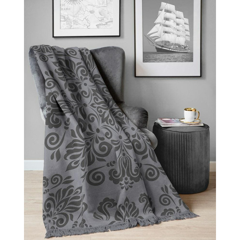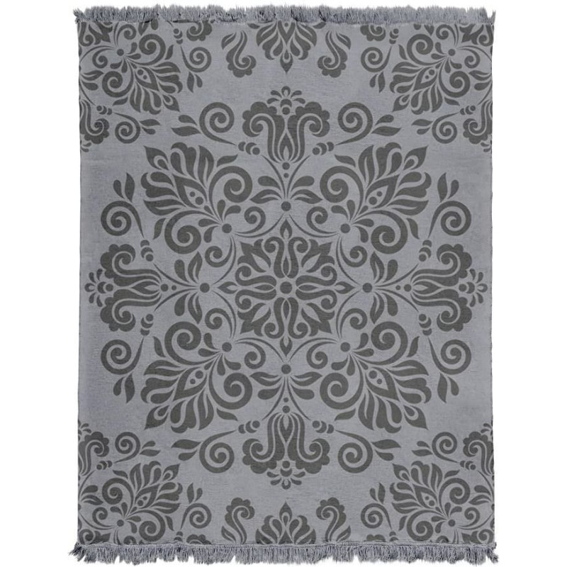 Jūsu iepirkumu grozs ir tukšs! Akrila kokvilnas sega 150x200 pelēka mandala ar bārkstīm 118jb