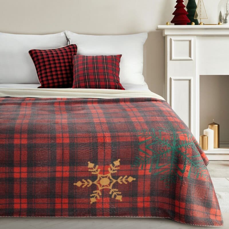 Jūsu iepirkumu grozs ir tukšs! Ziemassvētku sega 200x220 ķiršsarkans zaļš sniega pikas čeks Saint 23