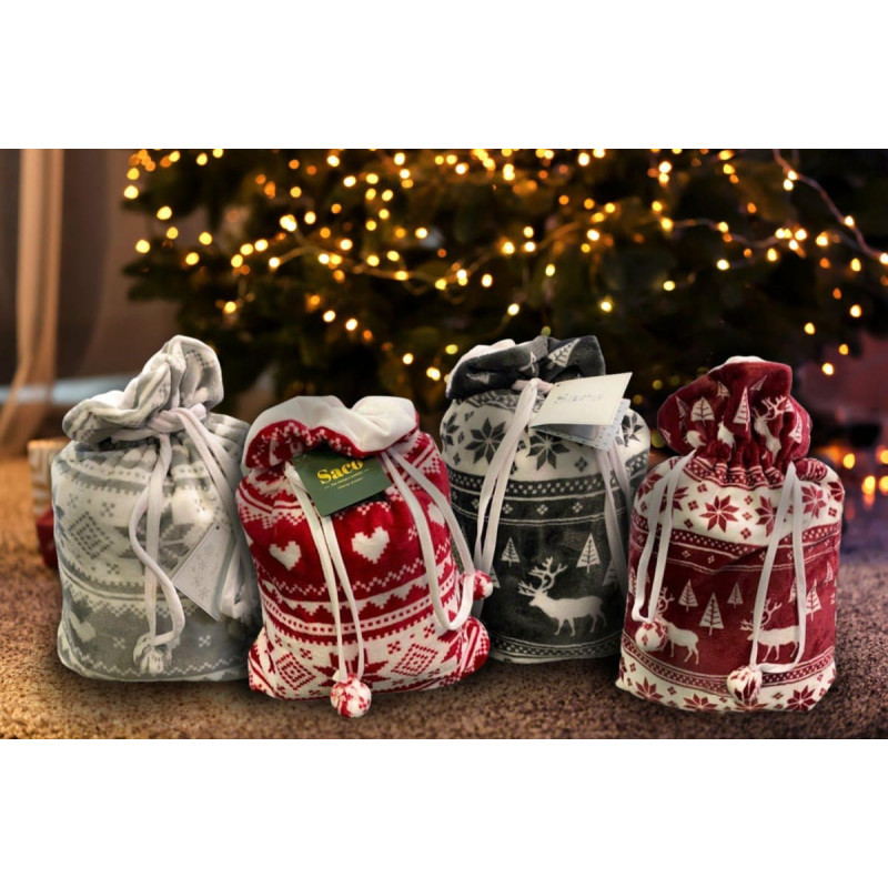 Jūsu iepirkumu grozs ir tukšs! Ziemassvētku sega 150x200 Saco Sherpa balti pelēkā dāvanu maisiņā