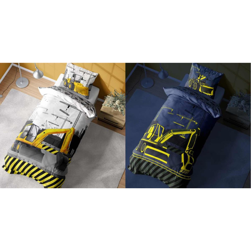 Jūsu iepirkumu grozs ir tukšs! Tumsā mirdzoša gultasveļa 160x200 4762 A Ekskavators balts dzeltens Fluo 50