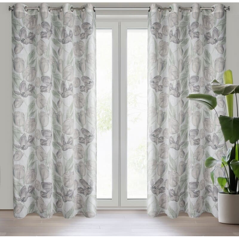 Jūsu iepirkumu grozs ir tukšs! Aizkars 140x250 Mille balti bordo ziedi gatavi ar Z10 starplikām