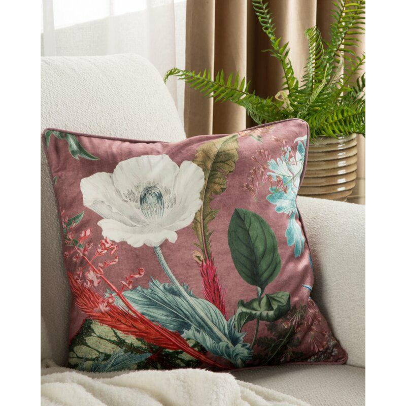 Jūsu iepirkumu grozs ir tukšs! Dekoratīvā spilvendrāna 45x45 Velvet 109 rozā ar ziedu rakstu, samts