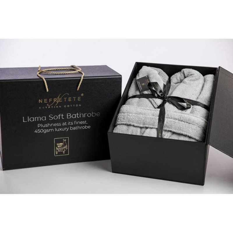 Jūsu iepirkumu grozs ir tukšs! Nefretete Llama Soft M unisex frotē peldmētelis, sudrabs, 450 gsm, izgatavots no 100% kokvilnas, rafinēta ar lamas vilnu