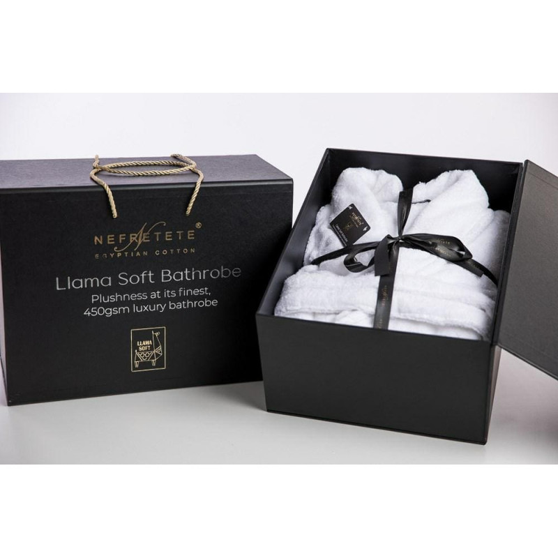 Jūsu iepirkumu grozs ir tukšs! Nefretete Llama Soft XS unisex frotē peldmētelis, balts, 450 gsm, izgatavots no 100% kokvilnas ar lamas vilnu