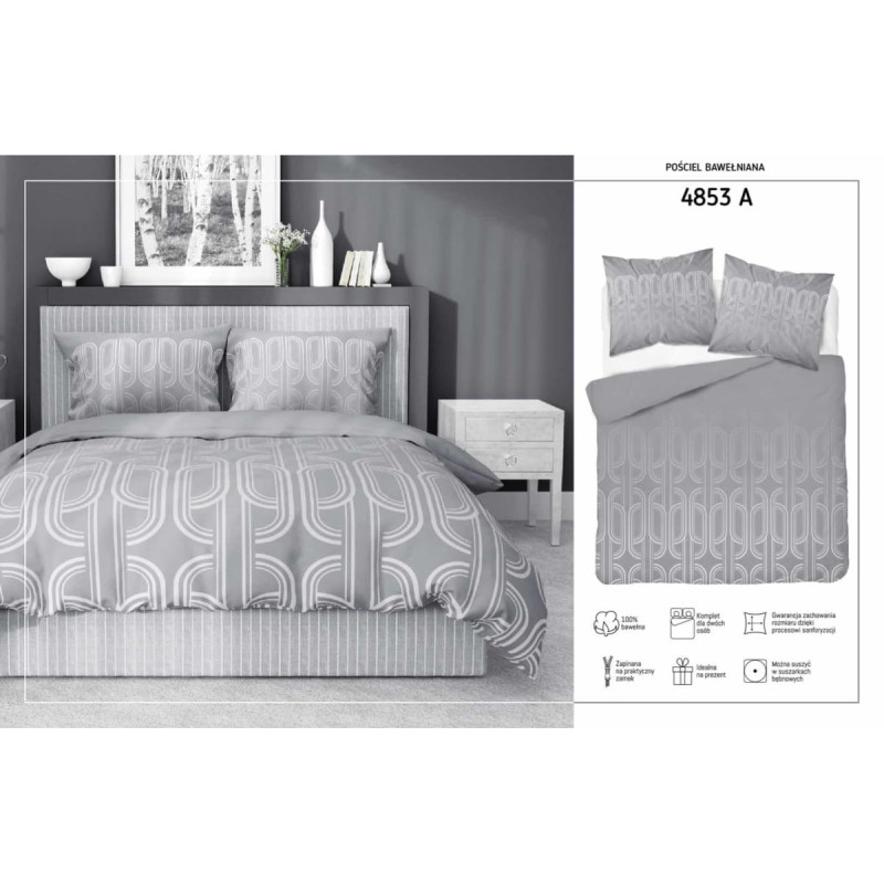 Jūsu iepirkumu grozs ir tukšs! Kokvilnas gultas veļa 180x200 pelēka ģeometrija 4853 A Kokvilna 74