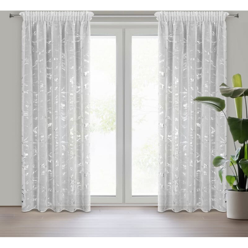 Jūsu iepirkumu grozs ir tukšs! Gatavs aizkars Alina 140x270 balts sudrabs uz lentes