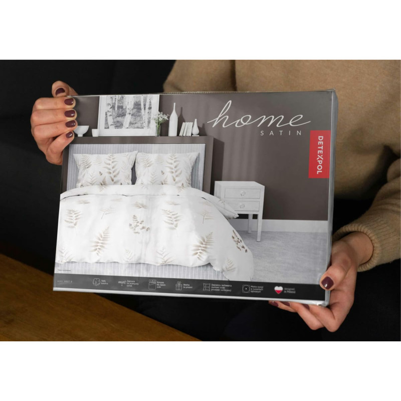 Jūsu iepirkumu grozs ir tukšs! Satīna gultasveļa 140x200 baltas smilškrāsas lapas ar vienu spilvendrānu 4927 B Home Satin 81
