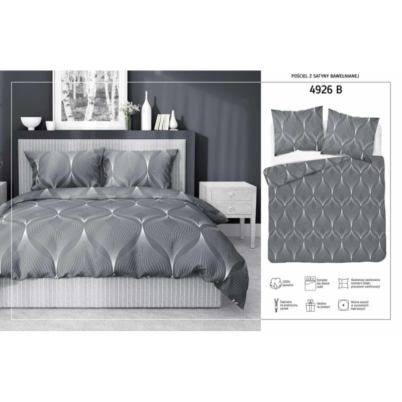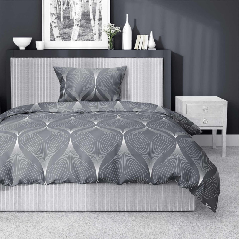 Jūsu iepirkumu grozs ir tukšs! Satīna gultasveļa 140x200 pelēkas lapas ar vienu spilvendrānu 4926 B Home Satin 81