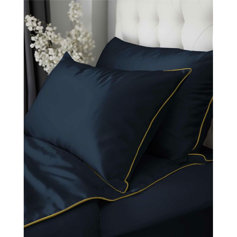 Jūsu iepirkumu grozs ir tukšs! Satīna gultas veļa 220x200 tumši zila ar caurulēm Mako Satin 62