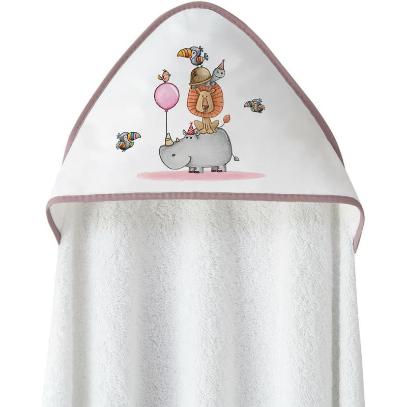 Jūsu iepirkumu grozs ir tukšs! Interbaby Vannas dvielis 100x100 Rino Leon balts rozā dvielis ar kapuci + priekšautiņš