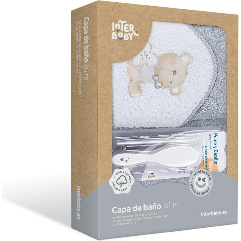 Jūsu iepirkumu grozs ir tukšs! Interbaby Vannas dvielis 100x100 Love you + zobu birste un ķemmes pelēks dvielis ar kapuci
