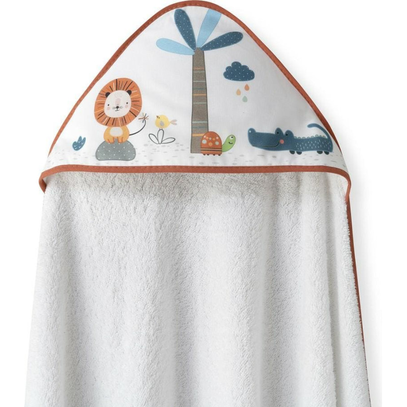 Jūsu iepirkumu grozs ir tukšs! Interbaby Vannas dvielis 100x100 Lew 2 balti oranžs dvielis ar kapuci + priekšautiņš
