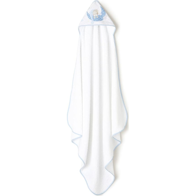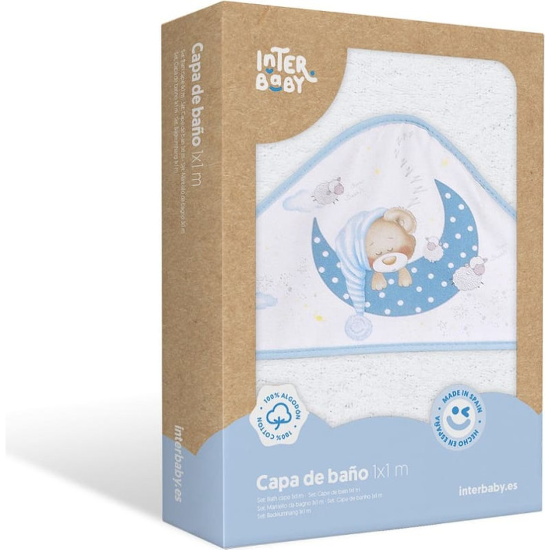 Jūsu iepirkumu grozs ir tukšs! Interbaby Vannas dvielis 100x100 Lācītis 2 balts zils dvielis ar kapuci
