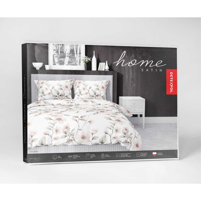 Jūsu iepirkumu grozs ir tukšs! Satīna gultasveļa 140x200 balti smilškrāsas ziedi 4915 B ar vienu spilvendrānu Home Satin 80