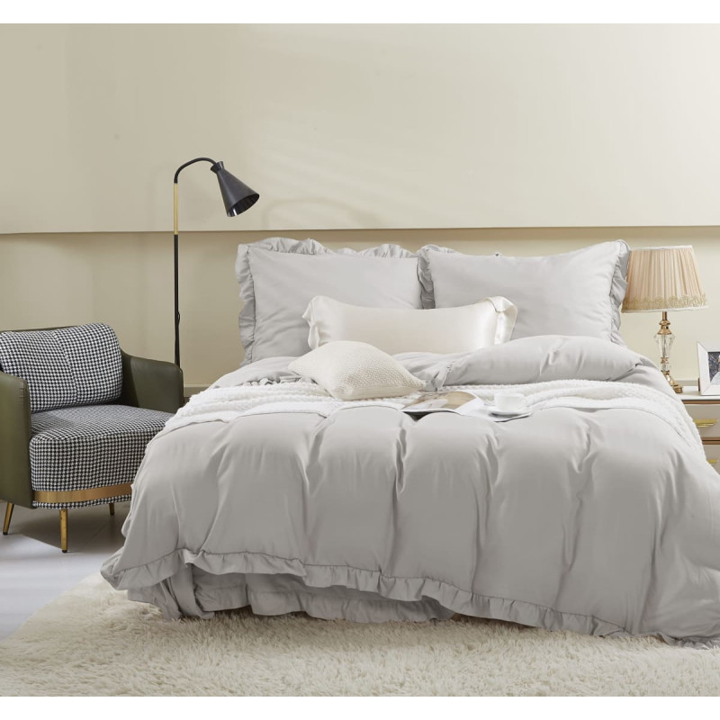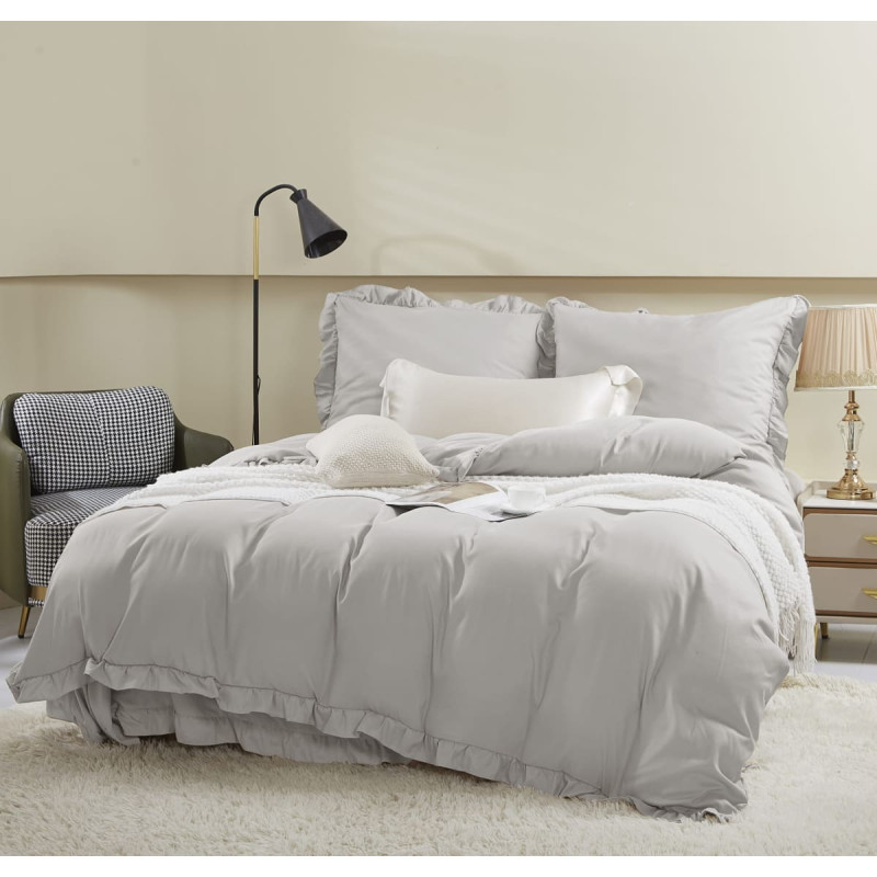 Jūsu iepirkumu grozs ir tukšs! Mikrošķiedras gultas veļa 220x200 Ruffy sudraba ar volānu I24