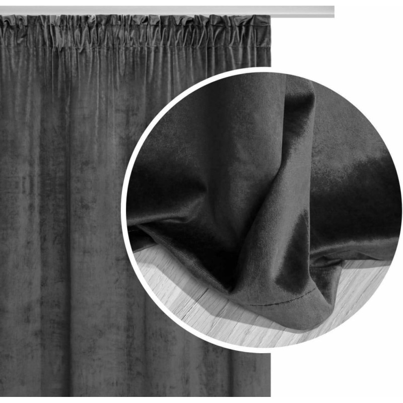 Jūsu iepirkumu grozs ir tukšs! Gatavs aizkars 140x270 grafīta velūrs uz mīkstas samta lentes viesistabai
