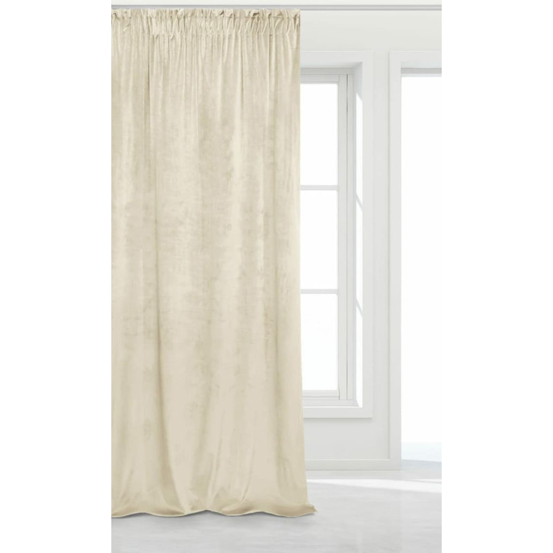 Jūsu iepirkumu grozs ir tukšs! Gatavs aizkars 140x270 krēmkrāsas samts uz mīkstas samta lentes viesistabai