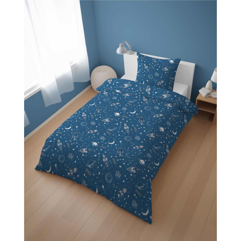 Jūsu iepirkumu grozs ir tukšs! Kokvilnas gultas veļa 160x200 4931 Kosmos zila ar vienu spilvendrānu 70x80 XOXO DREAM