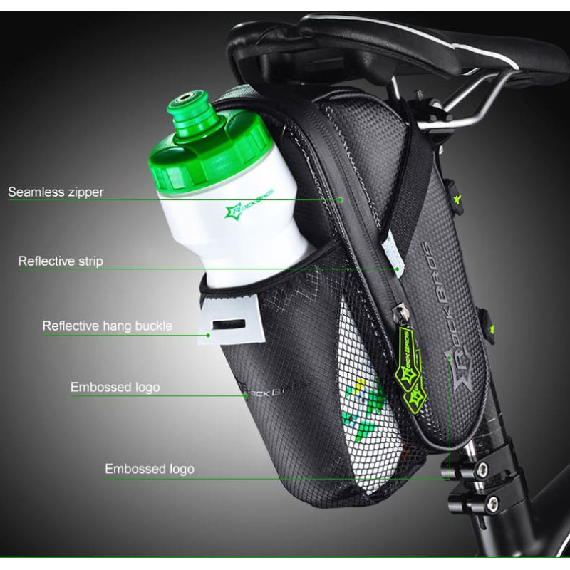 Jūsu iepirkumu grozs ir tukšs! Rockbros Ūdensnecaurlaidīga velosipēda soma zemseglu instrumentiem ar ūdens pudeles kabatu, melna